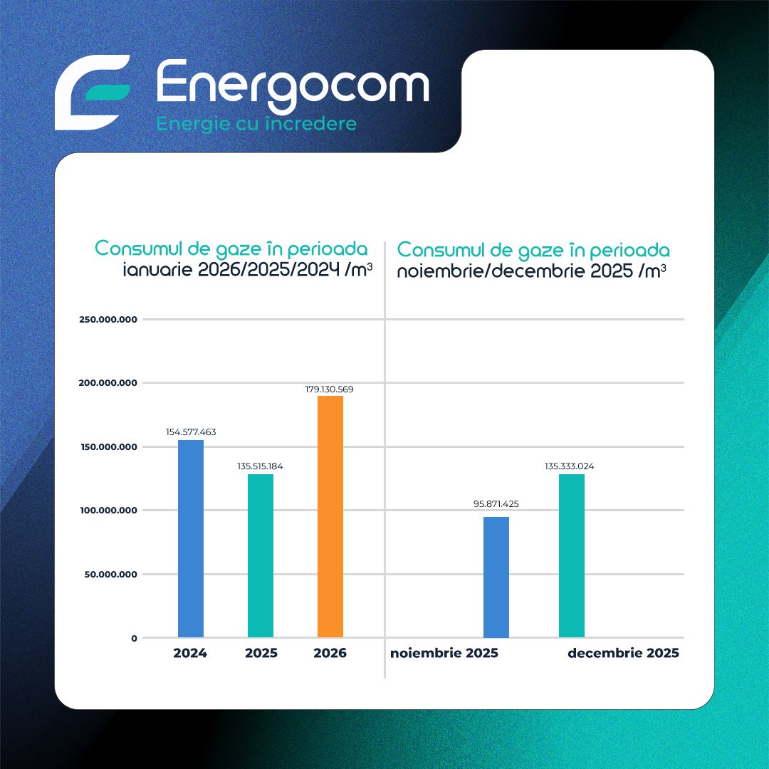 Consumul în luna ianuarie 2026 a fost de peste 194 de milioane de metri cubi, adică cu aproximativ ⅓ mai mare decât în luna decembrie, sau în comparație cu ianuarie anul trecut.