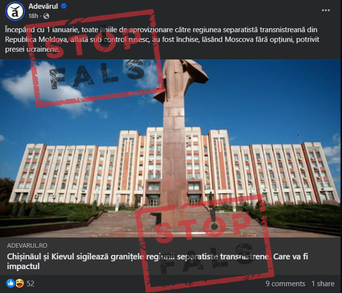 Numeroase instituții de presă din R. Moldova și de peste hotare și canale de social media au anunțat că „Chișinăul și Kievul au izolat Transnistria” și „au deconectat cei 1500 de militari ruși (care staționează ilegal în stânga Nistrului – n. r.) de la toate lanțurile de aprovizionare”. Unii au utilizat chiar sintagma „blocadă a Transnistriei” sau „sufocarea lentă a Transnistriei”. Deși informațiile sunt false, impactul a fost major deoarece, de data aceasta, sursa declanșatoare nu a fost una obscură (de obicei rusească), ci o publicație ucraineană destul de prestigioasă.