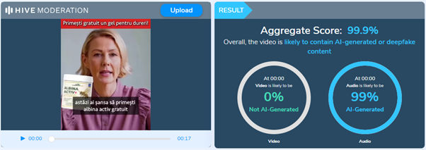 Instrumentele online specializate au confirmat că videourile publicate pe cele trei pagini de Facebook sunt create de inteligența artificială